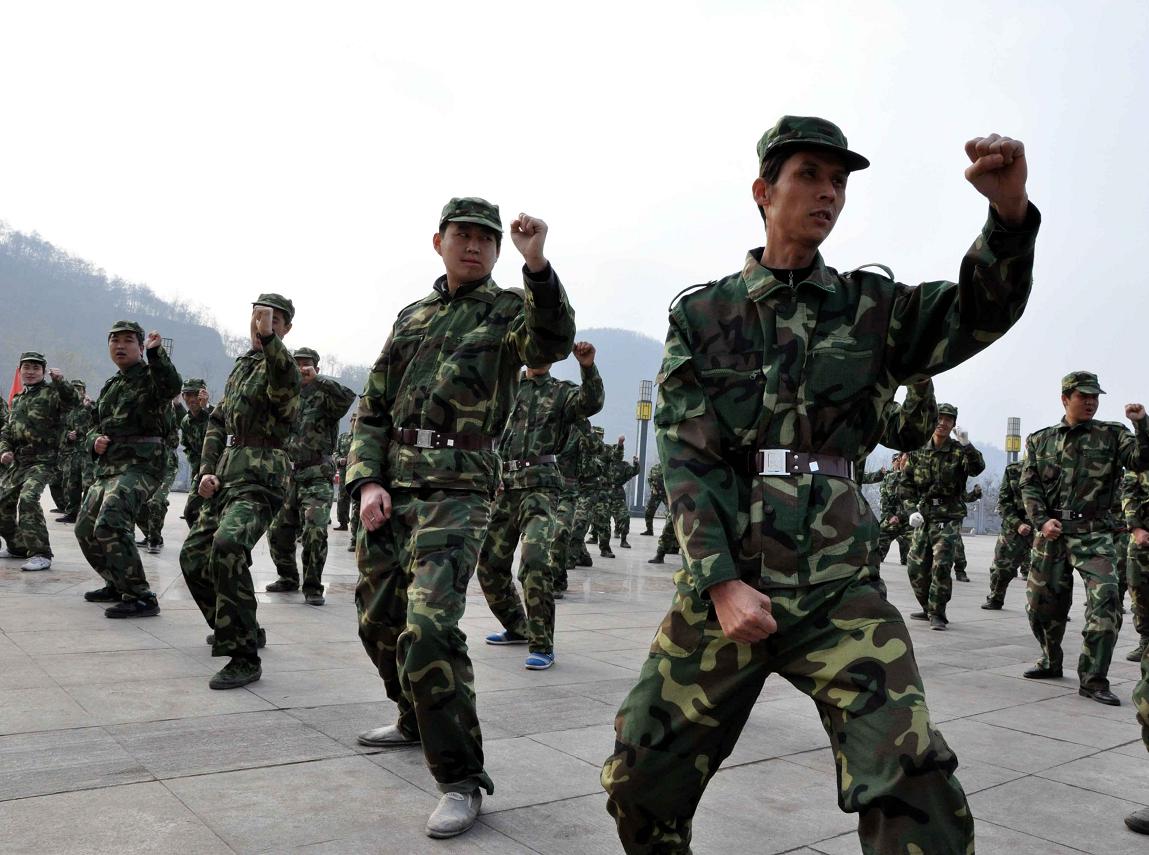 雨水在头顶飞溅,寒风如刀割般刺疼。快1分钟了,居然还是没喊!训练场上乱了套:有人小腿颤抖,有人左倾右晃,整齐划一变成了前倾后仰。