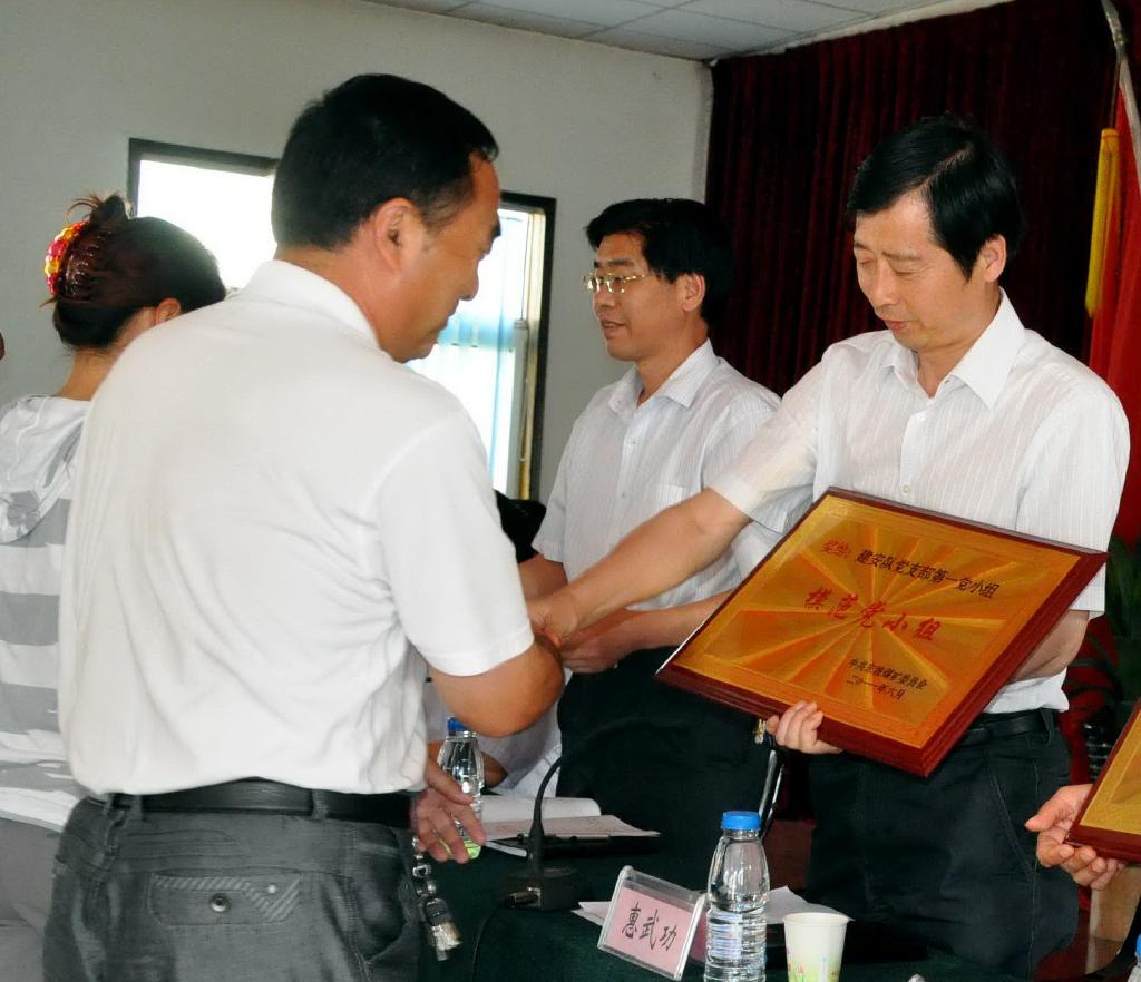 矿长惠武功、党委书记孙晓明、副书记王海江、李新中、副矿长昝六民等党政领导为3个四好领导班子、 4个四强党支部、9个模范党小组、49名四优共产党员以及10名优秀党务工作者颁发了奖牌、奖品和证书。