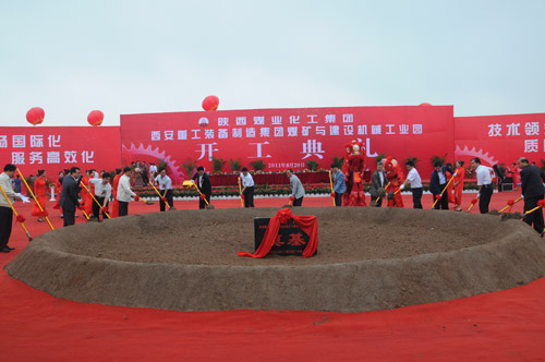 出席开工仪式的领导共同为陕西煤业化工集团西安重工装备制造集团煤矿与建设机械工业园培土奠基。