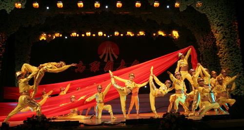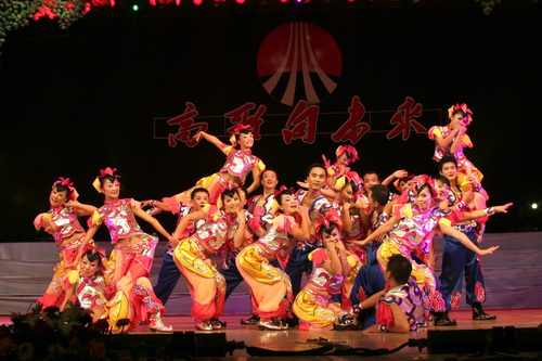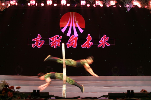 一开场,铜川矿务局军乐奏出了祖国大地山川壮丽,人民迎接社会主义到来的无比兴奋的心情,赞美祖国工农业生产蒸蒸日上的情景及广大人民充满自豪感和对祖国繁荣昌盛的期盼与歌颂,这支刚刚组建才26天的职工军乐队所有队员拼出所有的力量,把自己的激情都化作在对祖国的满腔热爱和无限崇敬中,如此的壮观场面令人激动不已,眼前顿时浮现汹涌奔流的黄河之水天上来的画面。无论是彬长公司的杂技《钻圈》、或者陕北矿业公司的舞蹈《金唢呐》、还是韩城矿务局歌伴舞《矿工万岁》、以及渭河煤化工集团公司音诗舞《跨越》,整台晚会高潮迭起,演员激情澎湃,观众欢呼雀跃。在气势磅礴的歌舞声中,我们仿佛听到了共和国铿锵的脚步声,在昭示着我们伟大祖国翻天覆地的巨大变化,仿佛看到陕西煤业化工集团正迈着矫健的步伐以饱满的精神状态迎接祖国的生日,走向更加辉煌灿烂的明天的场面。