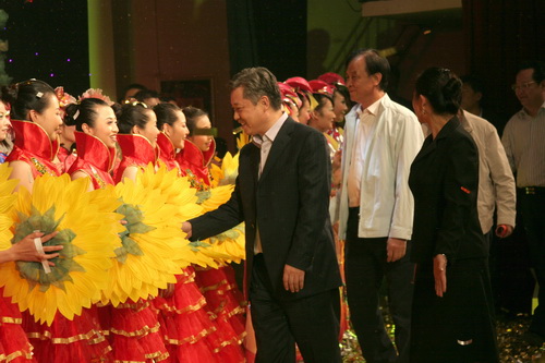 晚会结束后,集团公司党政领导来到前台,与全体演职人员握手留影。
