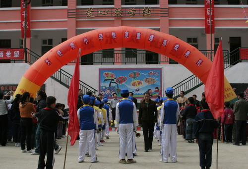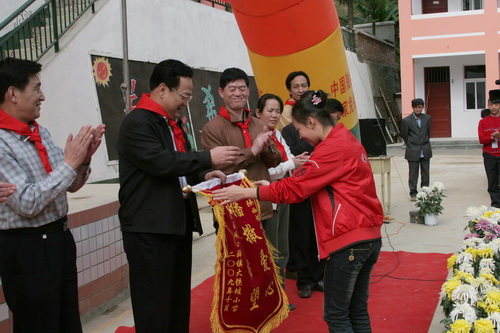 落成典礼上,少先队员首先向出席活动的嘉宾敬献了红领巾,省人大人事代表选举工作会副主任文力和略阳县教育局局长作了热情洋溢的讲话和答谢辞,少先队代表作了发言,大铁坝小学校长代表学校向集团公司敬献了鲜红的锦旗,锦旗上写着表达他们感恩的心语:“播撒爱心,情获希望”。