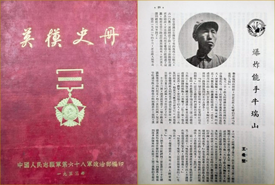 文中关于牛瑞山在文登川战役中的相关史料摘录自1953年中国人民志愿军第六十八军政治部编印出版的《英模史册》《英模史册》长245毫米,宽180毫米,红色绸面精装本,共118页。