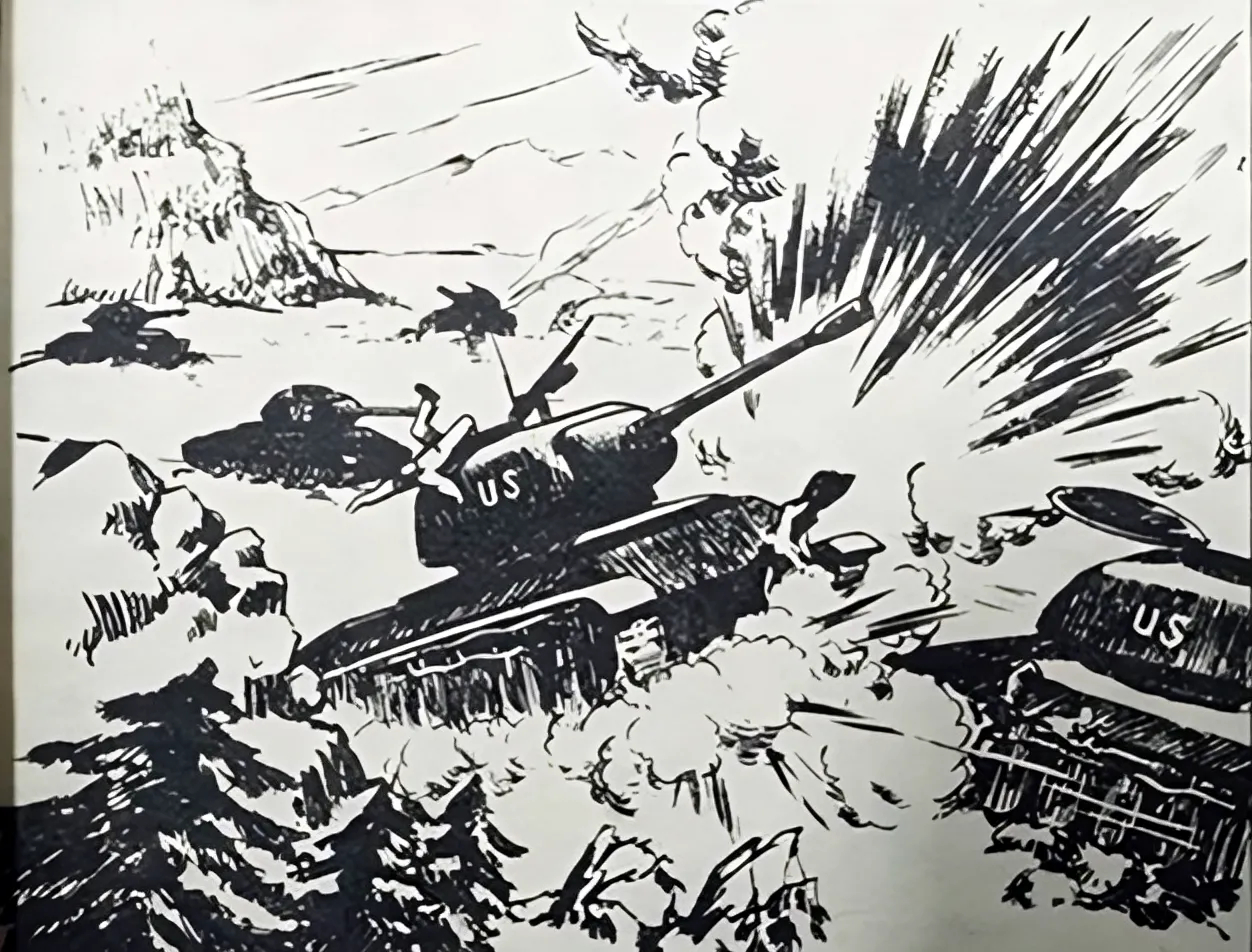 18日清晨,当美军的四辆坦克大摇大摆驶来时,牛瑞山在心中呐喊:“瞧好吧美国佬,那里有地雷!”。顷刻之间随着“轰”的一声巨响,首辆坦克应声瘫痪、趴窝不前。这一刻,牛瑞山心中涌起难以言表的激动——这可是他炸毁的第一辆美军坦克啊!