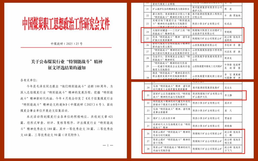 近日,从中国煤炭政研会传来喜讯,公司2部作品分别荣获煤炭行业第五届“华电煤业杯”微党课大赛一等奖、三等奖,6篇论文在煤炭行业“特别能战斗”精神主题征文活动中分获优秀论文二、三等奖。