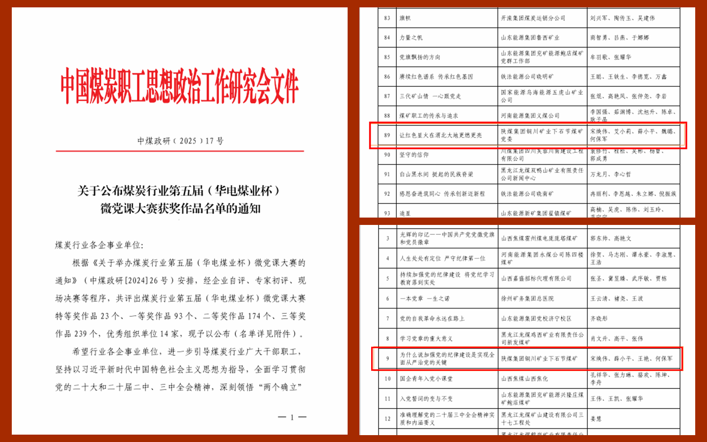 下一步,公司将以近期荣获陕煤集团党建工作目标责任考核优秀等次和本次在全煤系统微党课及主题征文中所获荣誉为新起点,努力以党建工作的持续加力,文化建设的深入推进,思想政治工作的创新举措和探索实践,通过党建引领汇聚动能、干字为先实处发力、务求实效推进发展,以党建工作与企业中心工作的同频共振、相融共建、协同发力,不断开创公司高质量发展新局面。