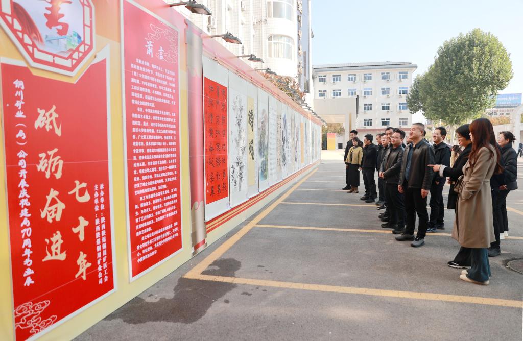 在公司成立70 周年即将到来之际,由铜川矿区工会组织举办的“砥砺奋进七十年”职工书画书法展在公司机关大院正式展出。