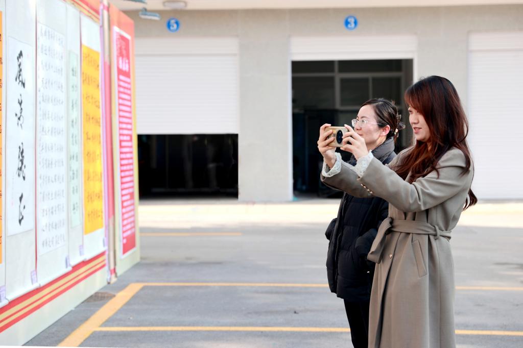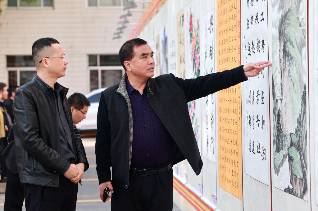 展览中,一幅幅精美的书画作品错落有致地悬挂在机关楼两边,吸引了众多职工与艺术爱好者驻足欣赏。在书法作品区,有的作品笔锋刚劲有力,彰显出企业勇往直前的磅礴气势;有的作品则笔法飘逸灵动,以诗词歌赋的形式抒发着职工对企业的热爱与赞美之情。美术作品区同样精彩纷呈,色彩斑斓的画作,生动描绘了现代化矿区的崭新风貌和矿工们的工作与生活场景,传递出一代代铜煤矿工特别能吃苦、特别能战斗、特别能奉献的“三特” 精神。