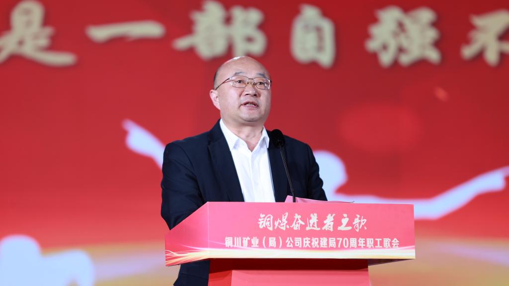 公司党委书记、董事长雷铁山致辞中指出,铜煤的70 年,是一部不畏艰难、催人奋进、自强不息的奋斗史,70 年来,铜煤人艰苦创业、无私奉献,铸就不朽丰碑。以坚强的毅力和勤劳的双手,在旧同官煤矿基础上,建成了西北地区重要的能源基地,煤炭产量从建局初期的30万吨跃升到千万吨,资产规模增长了541倍,书写了“从无到有、由弱到强”铜煤传奇。70年来,铜煤人守正创新、务实担当,书写奋斗华章。从建局初期在群山沟壑、地层深处战天斗地,到新时代科技赋能,建设智能矿井、打造智慧矿区,变化的是设备技术的迭代飞跃,不变的是铜煤矿工以奋斗彰显忠诚,以实干书写辉煌的初心使命。70年来,铜煤人初心不改、逐梦前行,绘就幸福底色。一系列民生工程让矿区旧貌换新颜,职工生活品质大幅提升,和谐矿区深情演绎,民生答卷亮点纷呈。70年来,铜煤人赓续血脉、以文育人,凝聚奋进力量。“一首歌、一本书、一座城、一条红色血脉”是铜煤独有的文化符号,更是永不褪色的精神标识。70年来,铜煤人培根铸魂、党建引领,把稳发展航向。“听党话、跟党走”是铜煤发展的根本保证,党建工作成为破解难题、引领发展的“定盘星”,企业始终沿着正确方向行稳致远。