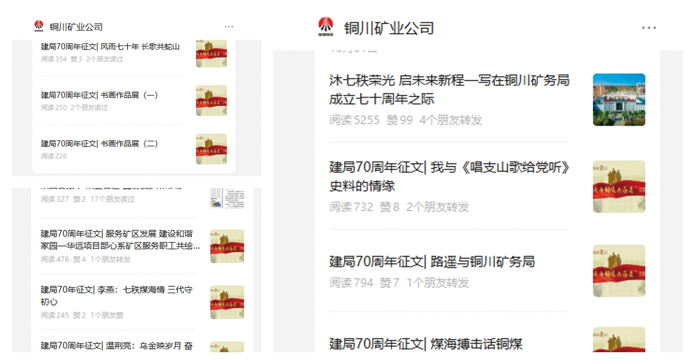自今年六月份,“我与铜煤共奋进”局庆70周年主题征文活动启动。征文活动启动后得到了公司和社会各界的热烈响应,从历史记忆到辉煌业绩、从英模人物到创新突破、从以人为本到改善民生、从绿色发展到转型升级,广大写作爱好者以多元视角、多样体裁,以精彩的征文作品,从不同角度、不同侧面,生动再现了铜煤波澜壮阔的奋进航程。其中,回忆文章饱含深情,通讯报道真实鲜活,英模事迹感人至深,矿区特写生动传神,诗歌散文意境深远,报告文学气势恢宏,曲艺作品妙趣横生。活动开展以来,公司网站、矿工报刊发的各类佳作亮点纷呈,作品《沐七秩荣光启未来征程》以宏大的叙事视角的历史纵深感,深情勾勒出铜煤人从艰难起步到辉煌崛起的壮阔历程。《煤海搏击话铜煤》《七十载乌金长河三代人煤海情深》字里行间,闪耀着几代矿工“特别能吃苦、特别能战斗、特别能奉献”的铮铮风骨。作品《我与〈唱支山歌给党听〉史料的情缘》揭开了铜煤与这首诞生在铜川矿区的红色经典歌曲之间深厚的历史渊源。在《路遥与铜川矿务局》一文中,生动追忆还原了文学巨匠路遥在铜川矿务局体验煤矿生活、感悟矿工精神,创作《平凡的世界》的动人故事。在《七秩铜煤砥砺行青年担当启新程》一文中,新一代铜煤青年以笔为誓,发出“强企有我”的青春宣言,一脉相承的坚守、一脉相承的新生力,以朴素的语言、深情的话语,生动展现了矿区的变迁,读来让人如临其境,倍感亲历......这些从历史深处走来、在现实中激荡,向未来奔涌的作品是凝聚人心的精神纽带,更是催人奋进的冲锋号角,激励着新一代铜煤人奋勇向前。一篇篇文稿,声情并茂,一段段历史,镌刻荣光,这些源于历史的记忆,源于心灵的情愫,激动人心、催人奋进。铜煤的光辉历史,矿工的奋斗精神,跃然纸上,映入眼帘,汇成奋斗的交响,奏响心灵的乐章,转化为推动企业发展的强大力量,在追忆铜煤荣光之中,有力激起了新时代的铜煤人奋斗创业豪情壮志。