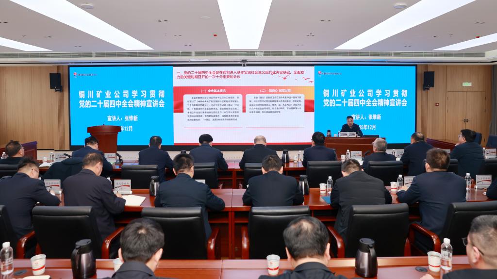 12 月 16 日,陕西煤业副总经理、总工程师张维新深入公司宣讲党的二十届四中全会精神,引导党员深刻领会核心要义、准确把握实践要求,为企业高质量发展凝聚思想共识与行动力量。公司党委书记、董事长雷铁山主持会议,公司领导班子成员、各副总,公司本部各部门负责人及党员代表参加了会议。