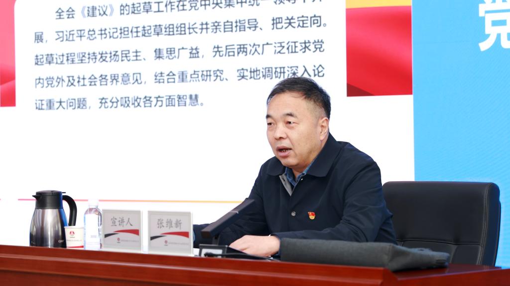 宣讲中,张维新围绕学习贯彻习近平总书记在党的二十届四中全会上的重要讲话精神和《中共中央关于制定国民经济和社会发展第十五个五年规划的建议》,从多个关键维度对全会精神进行了系统讲解与深入阐释。宣讲主题鲜明、逻辑严密,既立足国家发展大局,又紧密结合陕煤集团、陕西煤业发展实际,聚焦高质量发展核心任务,既有深厚的理论高度,又有扎实的实践深度,对全面系统掌握、深刻理解把握、准确贯彻落实全会精神,具有十分重要的指导意义。