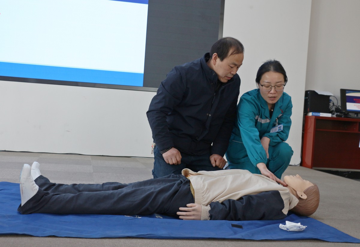 实操演练环节,参训班组长主动上手、积极参与,医护人员全程手把手指导、逐人纠正操作误区,确保每位班组长都能熟练掌握规范流程,做到“懂理论、会操作、能应急”。