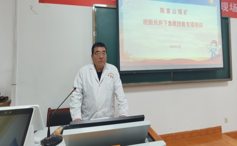此次培训紧扣井下作业风险特点,精准对接急救需求,课堂上,医护人员借助PPT课件和典型案例,用通俗、贴合井下实际的语言,系统讲解心肺复苏、窒息等常见急症应急处置流程,细致拆解创伤急救、自救器规范使用、AED操作、急救药品器械使用等核心内容,剖析急救技能在险情处置中的重要意义,让参训班组长吃透理论、明晰要点。