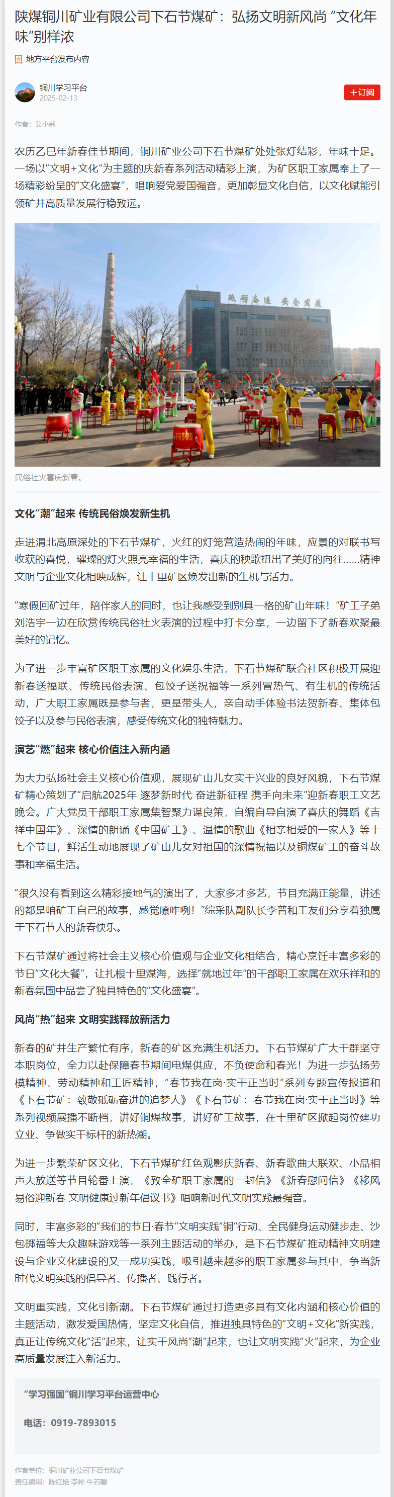 上一条:三秦网| 武艺栋:千尺煤海深处的“实干家” 下一条:集团网| 铜川矿业克难攻坚群策群力谱新篇