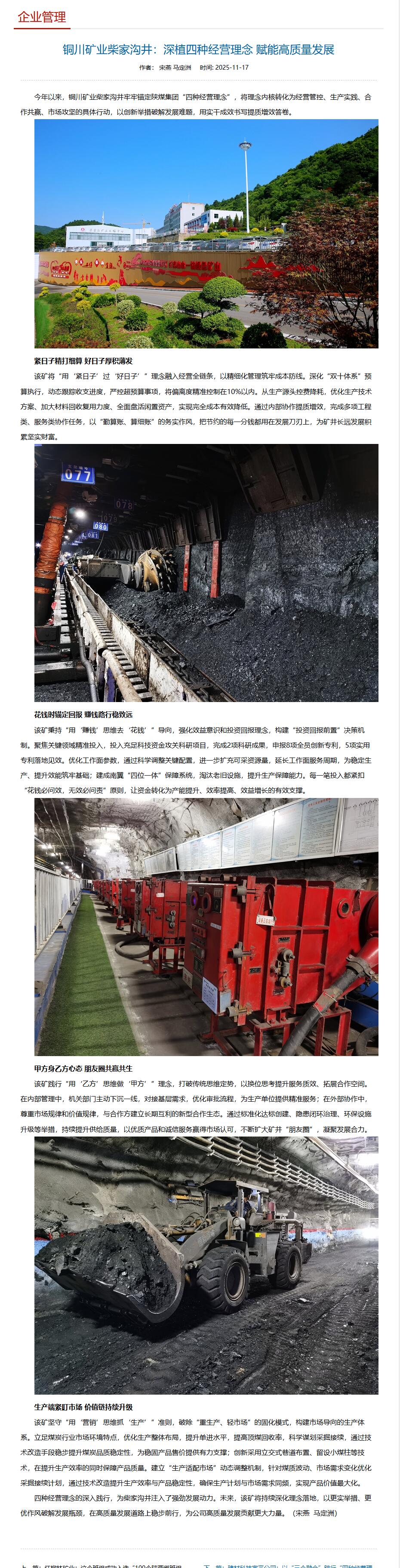 集团网| 铜川矿业柴家沟井:深植四种经营理念 赋能高质量发展