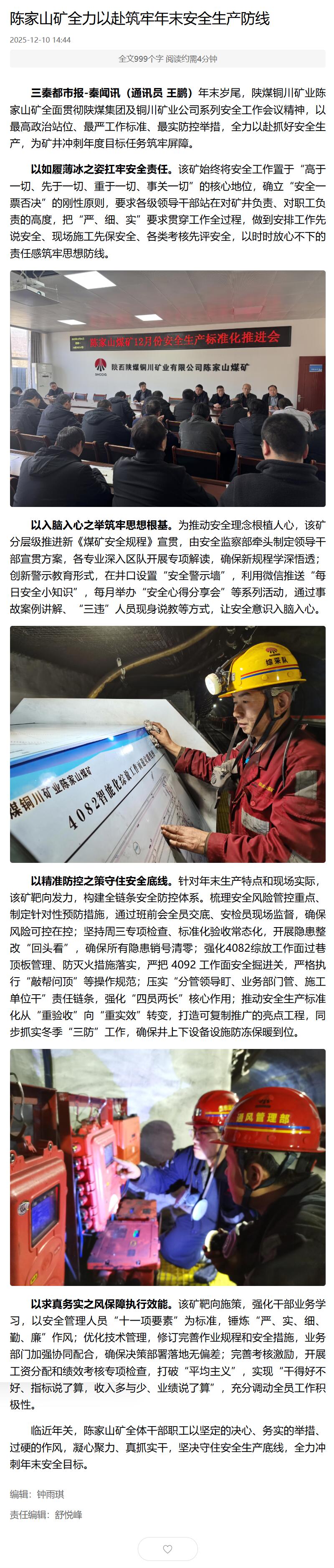 三秦网| 陈家山矿全力以赴筑牢年末安全生产防线