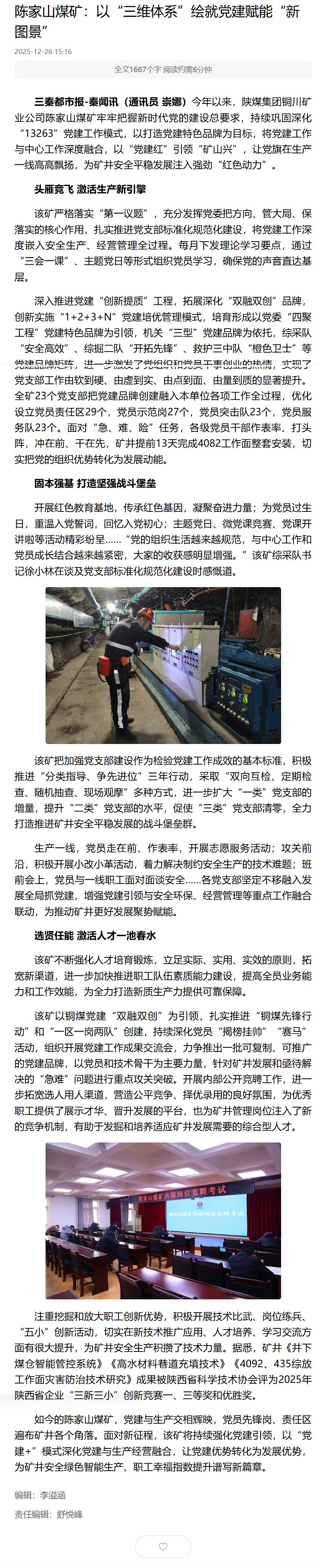 三秦网| 陈家山煤矿:以“三维体系”绘就党建赋能“新图景”