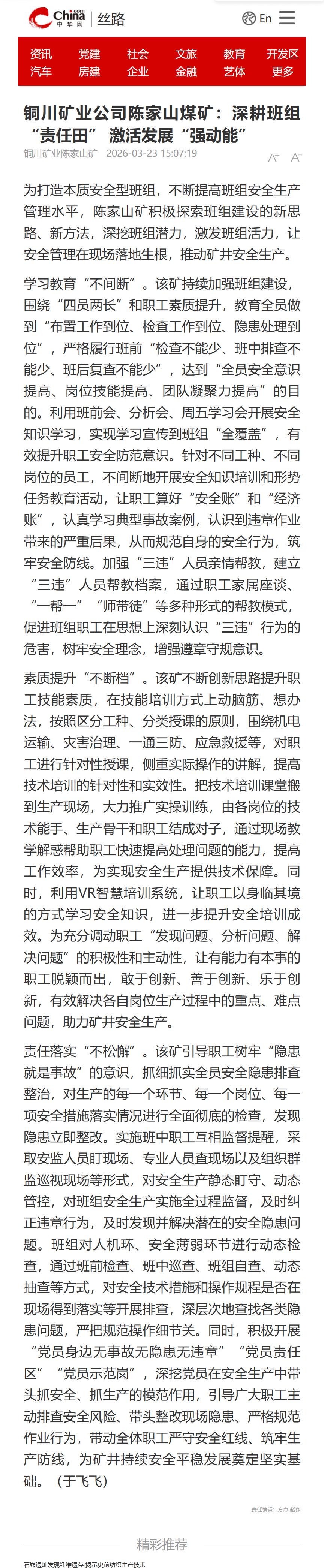 上一条:集团网| 铜川矿业深化“四责协同”机制 为企业高质量发展保驾护航 下一条:阳光网| 下石节矿:煤海深耕十八载 匠心筑梦守初心