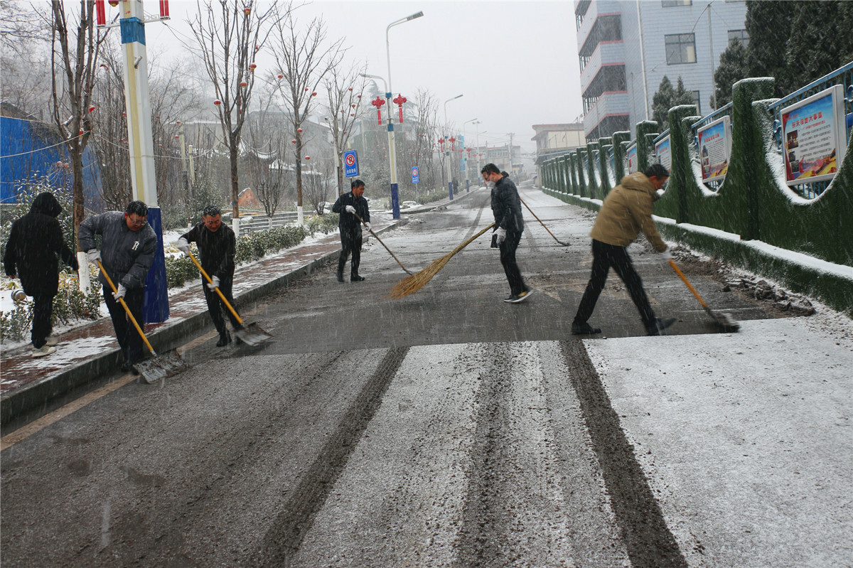 针对降雪造成矿区运输公路和通行道路湿滑的情况,矿井迅速调用提前储备物资,组织铲车清雪和人工撒盐,消冰除雪保障货运车辆和职工上下班通勤安全畅通,实行矿内临时交通管控,引导职工非必要不行车,在坡道、弯道、行人天桥等处,设立疏导交通岗位,提醒职工“慢行防滑”。