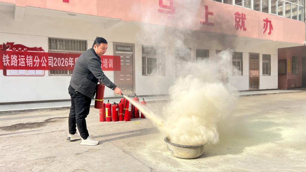 疏散演练结束后,消防器材使用培训随即展开。专业安全员结合工电段生产现场的火灾风险特点,详细讲解了干粉灭火器的工作原理、适用场景及日常维护要点,并现场演示“提、拔、握、压”的标准操作流程。在安全员的指导下,职工们逐一上前实操,亲自体验灭火过程,切实掌握了初期火灾扑救技能。