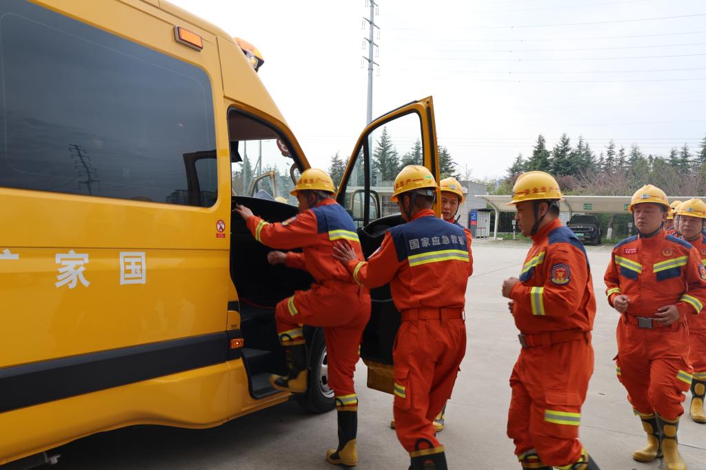 灾情指令下达后,队伍迅速启动应急响应,快速集结57人,携带41台(套)救援装备,卫星通讯指挥车、救援装备保障车、野外生活保障车等编队出动,警灯闪烁,奔赴“灾区”。