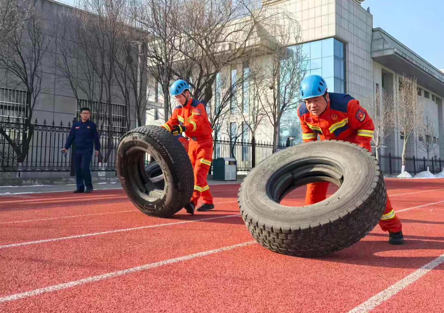 “嘭、嘭、嘭.....”沉重的轮胎一次又一次被掀翻,跑道上呐喊声此起彼伏,训练场上寒风凛冽,队员们呵气成霜,用沸腾的热血与极限的体能,对抗着零下的温度,训练热情丝毫不减。