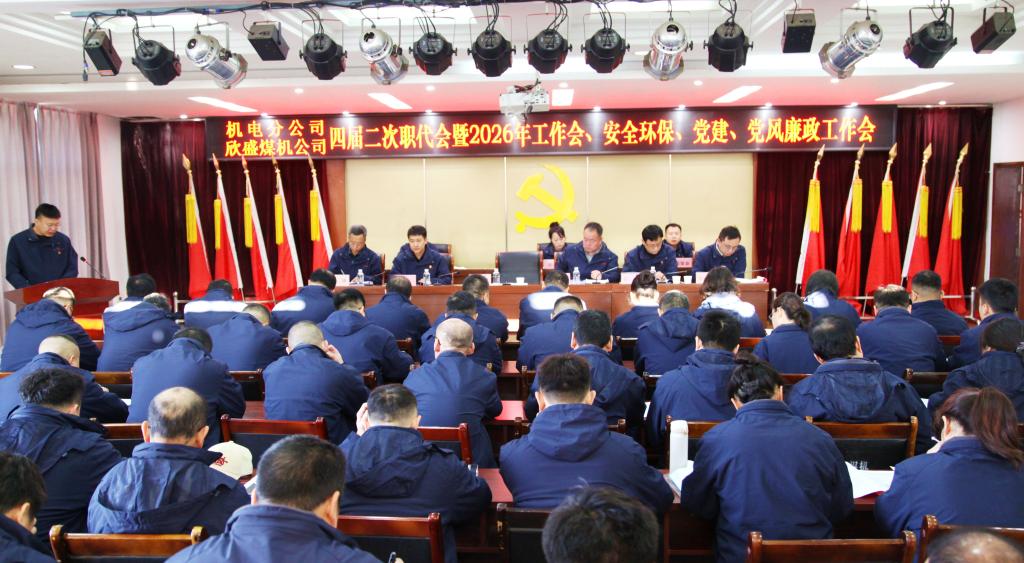 金蛇辞旧岁,骏马启新程。2月13日,机电分公司(欣盛煤机公司)四届二次职代会暨2026年工作会、安全环保、党建、党风廉政建设工作会在机关四楼会议室召开,全面贯彻落实矿业公司“五会”部署要求,总结回顾2025年工作成效,科学分析企业发展面临形势和突出问题,安排部署2026年各项重点任务,动员广大干部职工坚定信心担当作为,集聚合力勇毅前行,推动企业高质量发展各项工作再创佳绩,以龙马精神奋力谱写“十五五”开局新篇章。该公司领导班子成员,机关部门、生产车间干部职工代表及列席代表共计60余人参加了会议。