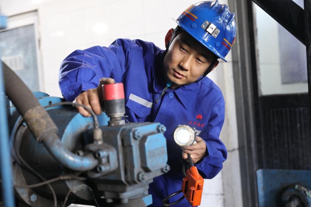 井下中央变电所,机电车间变电工岳坤与往常一样,交接班后前往设备区域巡检。切换线路、查看变压器整定值……对照巡检清单,一项项操作从他手中精准完成。他说“这些年值守都习惯了,在岗位上就不想过节的事,一如既往做好每一次巡检、维护、测试,让设备以最佳的状态输送电源,让大家过一个平安顺利的新年”。