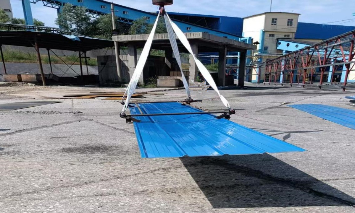 在日常起吊作业中,彩钢瓦及3毫米以下薄板,因材质单薄、刚性较弱,一直是吊装作业的难题。以往的起吊方式,难以控制板材受力,容易导致板材在吊装过程中发生弯折、变形,造成材料损坏。同时,由于板材变形造成捆扎松动后引起晃动,也给现场作业带来安全隐患。