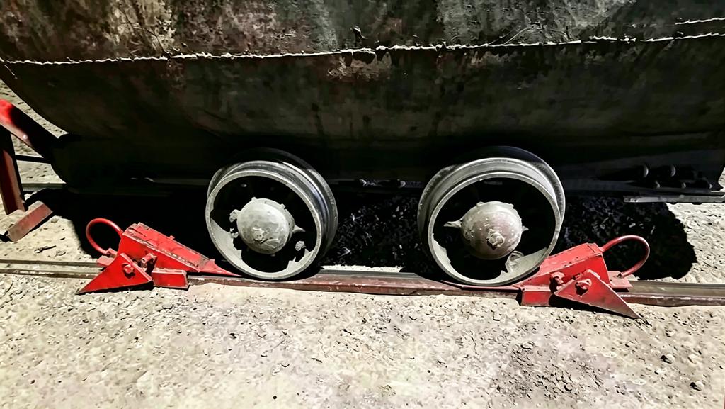 在轨道运输过程中,该矿有效应对拉运甩车后车辆临时停放的溜车风险,运输区技术骨干组建攻关小组,坚持“问题导向、实用为先”,聚焦阻车器便携性、防滑性和阻车效果核心需求,深入现场摸排情况、征求意见建议,结合作业实际反复优化设计、调试部件、开展试验,最终研制出新式便携式阻车器。