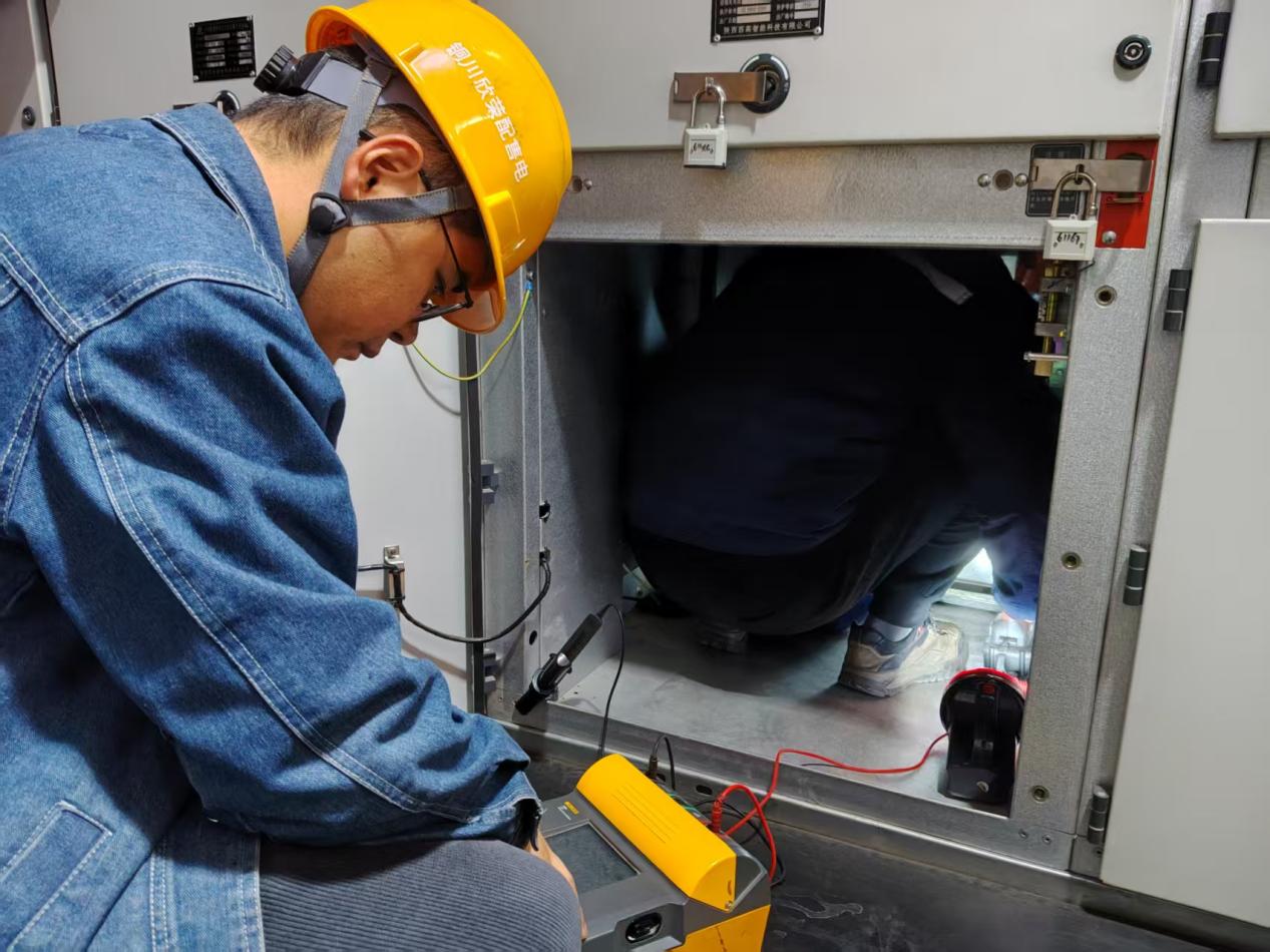 当日,该变电站突发电缆故障,若不及时处置将影响电网稳定及矿业生产用电安全。公司迅速启动应急响应,抽调试验班组党员骨干组建突击队。突击队员不讲条件、火速集结,严格遵循安全规程,分工协作、攻坚克难,精准完成故障定位、绝缘检测及装置调试等关键工作,全程严守安全底线,不留任何隐患。
