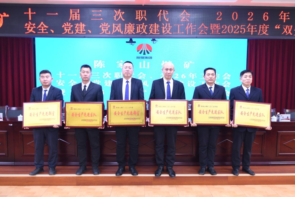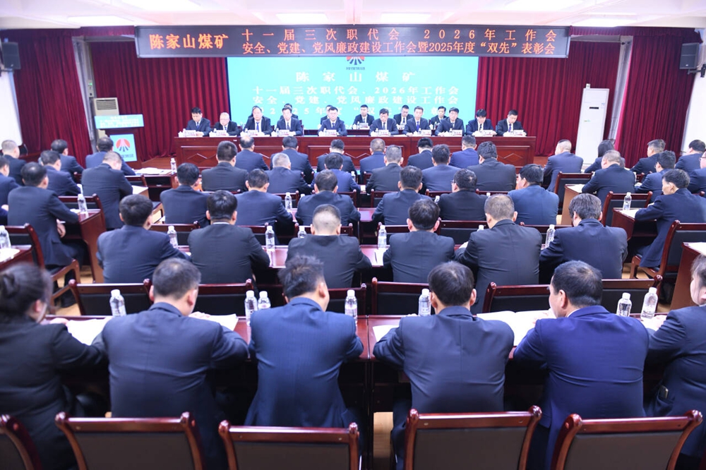 2月12日,陈家山矿召开十一届三次职代会、2026年工作会、安全、党建、党风廉政建设工作会暨2025年度“双先”表彰会,动员广大干部职工统一思想,明确目标,主动作为,砥砺奋进奋力开创矿井安全平稳发展新局面。来自全矿各条战线的职工代表、列席代表和受表彰的先进集体代表100余人参加了会议。