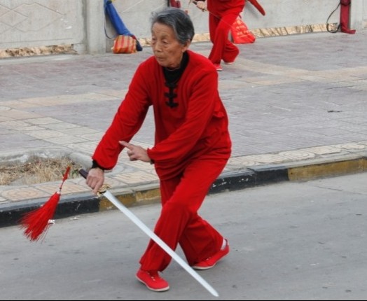 陈大娘说“过去,吃了晚饭后,除了看电视就是打麻将,生活习惯不好,现在生活条件也好了,小区里渐渐多了音乐声和老人们的欢笑声。”陈大娘说,我是老矿部河西那片的搬迁户,新楼房已经盖了六层了,期盼着早日住上新楼房。舞舞剑真好,现在每天舞剑,连牌都不想打了,高血压也降了下来,药都不用吃了,现在我们老年人个个身体健康,精气十足!