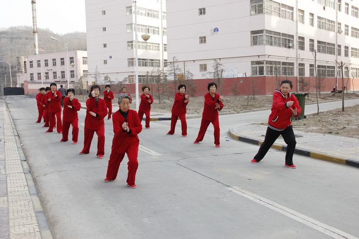 家住王家河老矿部河西公房的崔秀珍老人今年已经75岁了,自从小区建起了住宅楼后,每天清晨她都会准时地来到小区广场,在付光全教练带领下,练练太极剑、太极扇、太极拳……