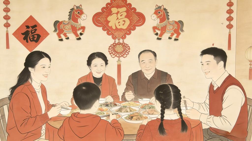 听着爷孙俩的话,我忽然想明白了,原来一代人有一代人的年味,年味从不是一成不变的模样,而是每个时代里,最真切的生活期盼。父亲那一代人,生于物资匮乏的年代,日子过得紧巴巴,过年的意义,是盼着能填饱肚子、穿上暖衣,能在寒冬里吃上一口肉、喝上一口热汤,这份“能活着、能过好”的简单期许,就是他们心中最浓的年味。到了我这一代,生活渐渐富足,不用再为温饱发愁,过年的期盼便成了能吃好、能穿好,能和家人围坐在一起,吃一顿丰盛的年夜饭,穿一身称心的新衣服,这份“安稳顺遂、衣食无忧”的幸福,便是属于我们这代人的年味。而到了孩子这一代,生在物质丰裕的时代,从未体会过温饱的窘迫,衣食住行样样不愁,可他们的童年,却被无尽的学习和补课填满。晨起上学,傍晚补课,周末也被各种辅导班占满,小小的肩膀扛着重重的学业压力,连肆意玩耍的时光都成了奢望。所以对他们而言,过年的意义,从来不是新衣服和好吃的,而是能有一段真正属于自己的休息时光,不用被闹钟叫醒,不用面对成堆的作业和试卷,能和许久未见的亲人相聚,能和小伙伴们无拘无束地跑跳、放炮、放烟花,能好好享受一段没有学习压力的童年时光。这份“卸下疲惫、自在玩耍”的轻松,就是属于孩子们独有的年味。