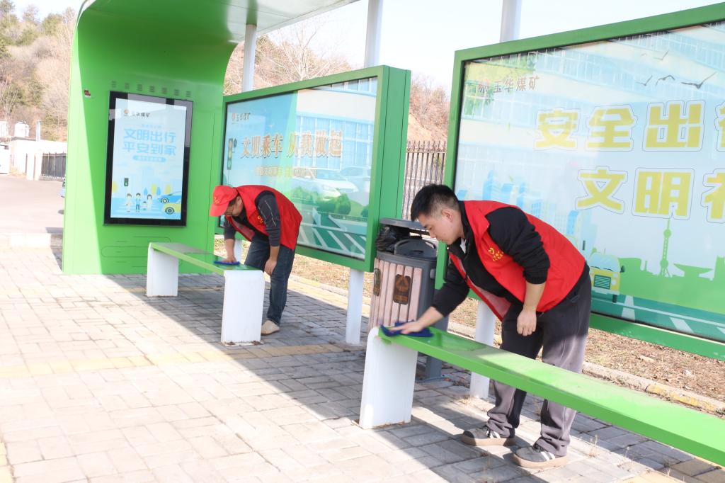 随后,青年志愿者兵分两路,一队深入车间、班组、岗位一线,向职工发放学雷锋志愿服务倡议书260 余份,用亲切的讲解动员广大职工从细微做起、从点滴做起,主动投身志愿服务和文明实践活动,让奉献精神在矿区蔚然成风;另一队奔赴矿井工业广场、生活区、职工候车站等公共区域,开展环境卫生集中整治行动,仔细擦拭牌板、护栏、候车亭,认真清理卫生死角,全面清洁通勤车内外环境,以实打实的行动让矿区环境变得更加整洁优美、文明有序,用一抹抹 “志愿红” 勾勒出矿区春日里最美的风景线。